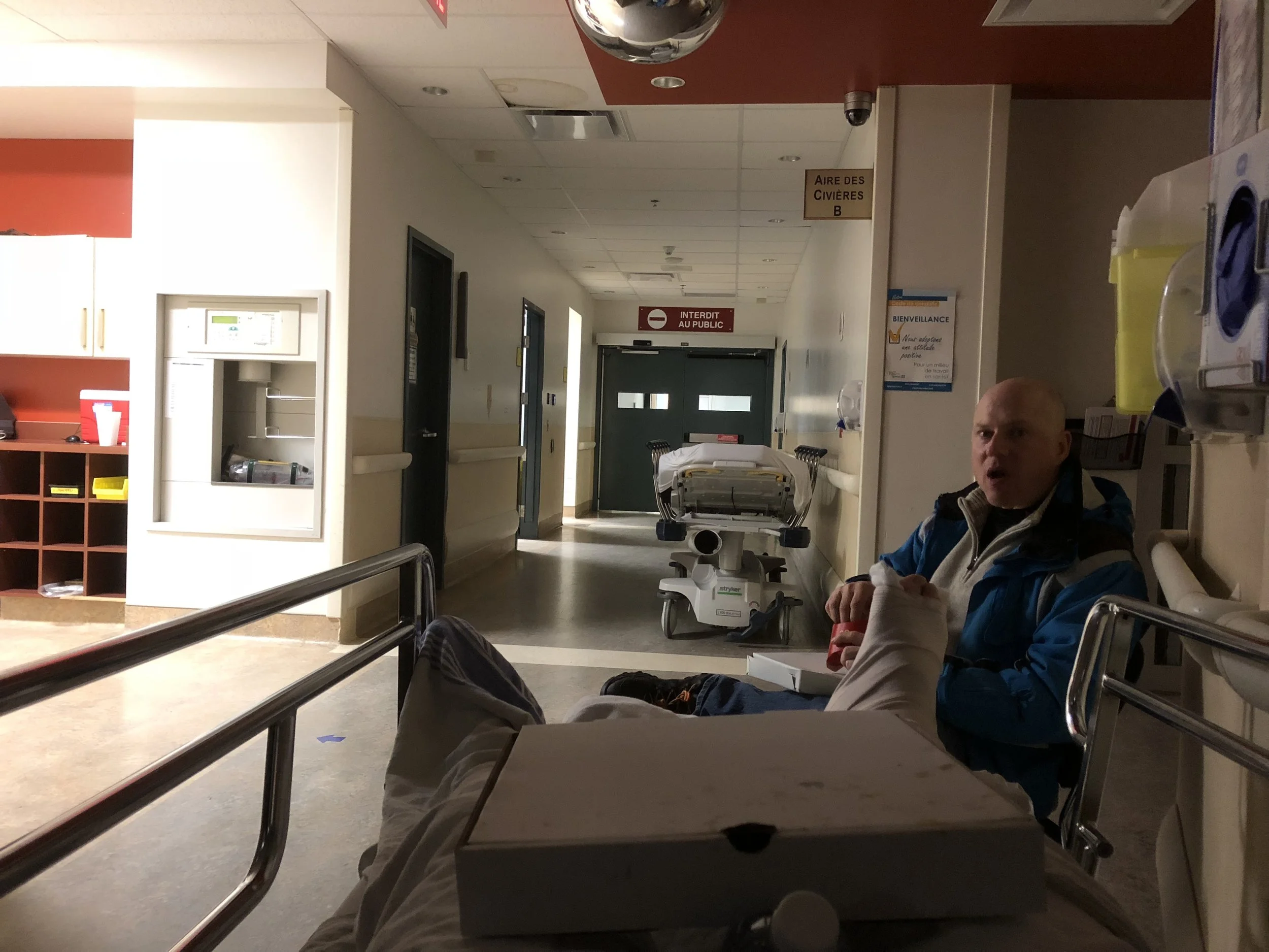 I am blessed to have many great friends who I have shared much of my life with. Many of which share many of my passions and some of which are professionals like Gaetan Martel, the other person who got a free ride with me 900 feet down the side of a mountain on the BC/Alaska/Yukon boarder in a river of snow. And like me, came out OK. Well Gaetan is a doctor and like me is an active outdoors person who knows me, knows my limits, and knows what my priorities are and Gaetan is a doctor, but not just a doctor, a great doctor. I called Gaetan knowing he would give me the best advise. The more I thought about it I knew I would be a day or 2 in hospital. Did I want to be 3 hours from home in a hospital and inconvenience people to have to come back to get me or wait for me? Not a chance. “Gaetan, what is the risk of me going to Hull?” Gaetan responded by asking if I could see my toes to which I responded yes. He asked if the color was relatively normal, and again my response was yes. Lastly he asked if I could wiggle my toes and again I said yes. At this time he advised me if I can see my toes, they don’t change color, there is no evidence of severe swelling, and I can wiggle them I would be good to make a straight shot to Hull as long as I could manage the pain and he advised me that they probably would not operate until tomorrow anyways. I popped a few Advil and besides feeling my bones pop around each other every few minutes as I adjusted myself I was good. It really sounds more gross and painful than it was. Well more painful anyways. It is a bit of a weird sensation feeling your bones, that are supposed to be attached rub against each other. And for comfort, hey, it’s all relative. 2 years ago we had to descend a mountain, me with 2 fractured bones and a severely sprained knee, after a true life and death situation. Descending 3.5 hours down the side of a mountain with 2 fractures, that is tough! 4.5 hours in a posh SUV with a coffee and a pee cup… I was at the spa.